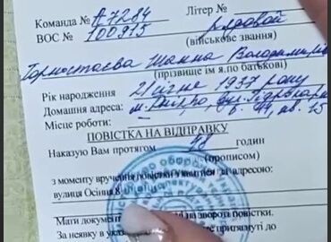 У Дніпрі повістку отримала 86-річна Жанна Горностаєва, яка раніше працювала в лікарні. Жінка народилася і жила у нинішньому Бахмуті, а...