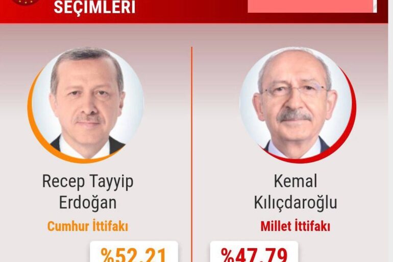 За підсумками підрахунку 99,66% бюлетенів у другому турі виборів у Туреччині чинний глава держави Реджеп Ердоган — 52,13% голосів, його...