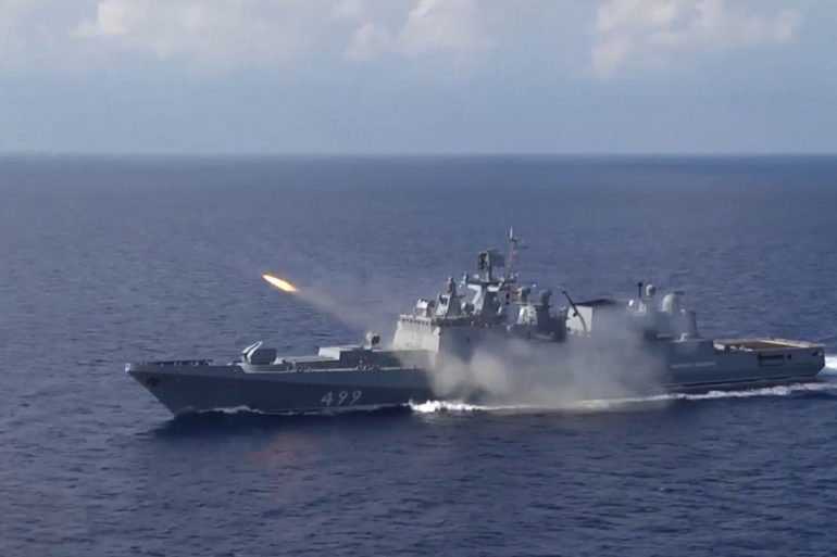 Отряд более чем в 20 кораблей Черноморского флота в составе фрегатов «Адмирал Макаров» и «Адмирал Эссен», малых ракетных кораблей «Грайворон»...