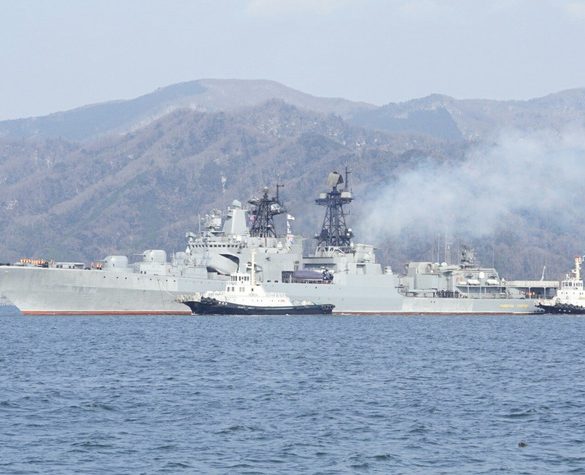 Великий протичовновий корабель “Адмірал Трибуц” Тихоокеанського флоту РФ увійшов до гавані Сингапуру, щоб поповнити запаси води й палива. Чорного диму...