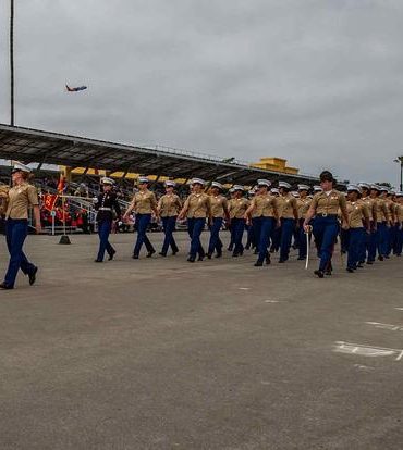 Уперше жінки закінчили Рекрутський склад морської піхоти Сан-Дієго, штат Каліфорнія. Випуск десятків жінок з Рекрутського складу морської піхоти Сан-Дієго у...