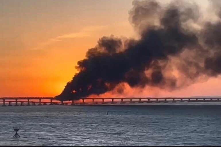 Стовпи диму здіймаються над Кримським мостом. Про це повідомляють місцеві медіа. У мережі поширюють відео, де над мостом здіймаються густі...